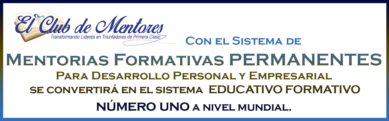 El Club de Mentores Estamos Comprometidos a La Excelencia Sea Parte del Sistema Educativo Número Uno a Nivel Mundial y Trasforme Su Mente y Su Bolsillo Para Siempre. El Equipo Ejecutivo, con una mente empresarial y un corazón humano están listos para llevar esta oportunidad Educativa y Financiera a todos los países del mundo. El Club de Mentores está diseñada para hacer una diferencia en su vida, en la comunidad y en el mundo entero porque el éxito es un derecho de nacimiento y usted fue creado para vivirlo. Usted podrá desarrollar habilidades y cuidadosamente cultivarlas, nuevas técnicas, nuevos métodos y estrategias que al usted aplicarlas; le ayudaran a avanzar en todas las áreas de su vida.